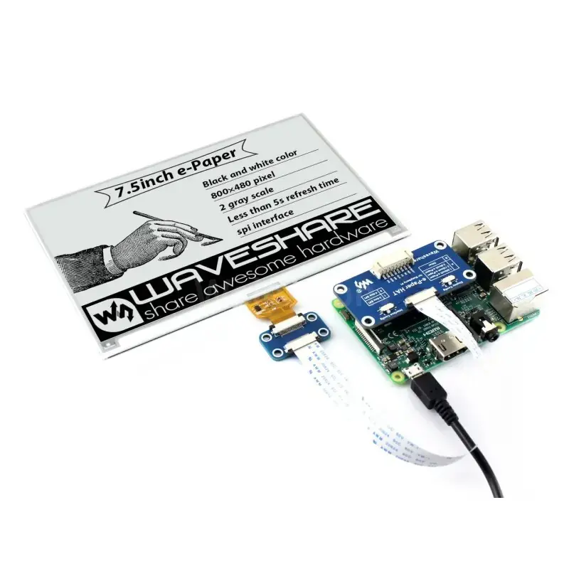 7.5 inç E-Ink ( E-Paper ) Renkli Ekran HAT+ ve Sürücüsü , 800x480, SPI, 13504