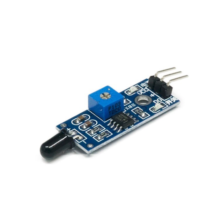 Ateş algılayıcı sensör kartı 760 nm - 1100 nm arasındaki dalga boyuna sahip ateşi tespit etmek için kullanılan bir sensör kartıdır. Üzerinde bir adet IR alıcı barındırır. Yangın söndüren robotlarda ateş algılama sensörü olarak kullanabilmektedir. Üzerindeki trimpot ile hassasiyet ayarı yapılabilmekte ve dijital çıkış alınabilmektedir. Ürünün kolay prototipleme işlemlerinin yapılabilmesi için dişi-dişi jumper kablo ile beraber gönderilmektedir.