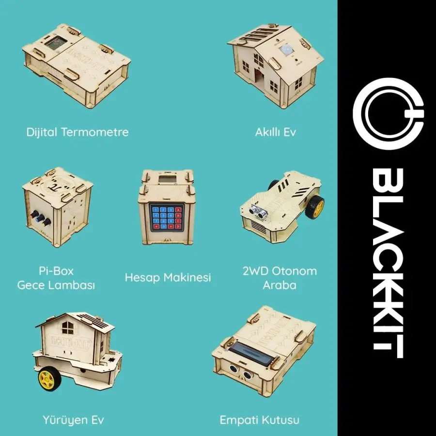 Black Kit çeşitli sensörler ve tahta parçaları içeren bir hayalet - seç - üret temasıyla geliştirilmiş Arduino keşif setidir. Hayalinizdeki projeyi gerçekleştirmek için istediğiniz tüm parçaları içeren bu Kit yaratıcılığınızı sınırlamadan elektronik ve programlama alanlarında keşif yapmanıza olanak sağlar.