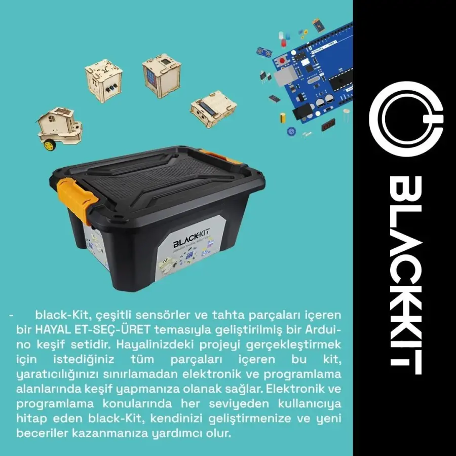 Elektronik ve programlama konularında her seviyeden kullanıcıya hitap eden black-KİT kendinizi geliştirmenize ve yeni beceriler kazanmanıza yardımcı olur