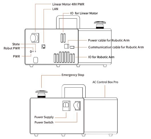 UFactory Lineer Motor, AC Control Box Pro ile birlikte kullanılmalıdır. Temel olarak hareketli parçaları (Robotik Kol) destekler ve verilen yöne göre sorunsuz bir şekilde hareket etmelerini sağlar, bu da xArm'ın çalışma aralığını önemli ölçüde artırır.