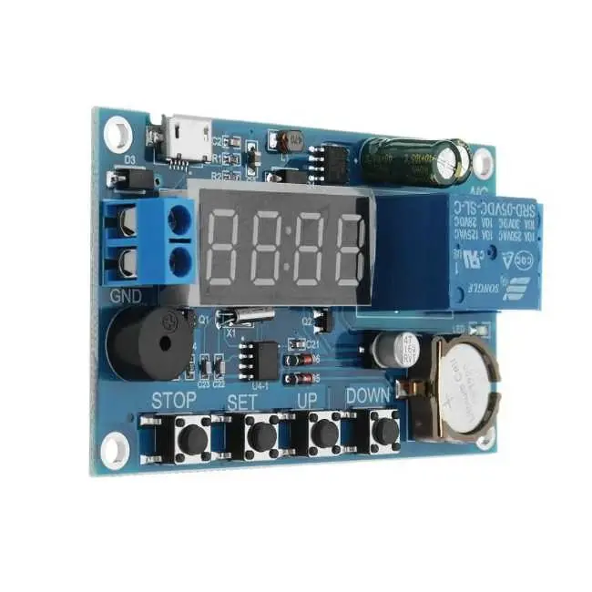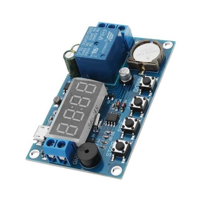 Gerçk zamanlı (real time) olarak ayarlanabilir 1 kanal röle kartı ile, farklı niteliklerdeki yükleri gün içinde berlilediğiniz saatler arasında kontrol edebilirsiniz. Örneğin 1 de açılıp, 1:30 da kapanması gereken bir yük gün içinde 4 farklı zamanda daha benzer nitelikte ayarlanabilir ve toplamda 5 kez açma kapatma döngüsüne sokulabilir. Kart ve yük aynı DC gerelim kaynağı ile beslenebildiği gibi, yüksek güç gerektiren AC yükler kartın diğer terminalinden bağlanarak kontrol edilebilir.
