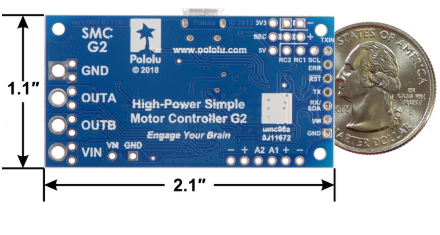 Pololu Yüksek Güçlü Basit Motor Denetleyici (Simple Motor Controller) Kartı, fırçalı DC motorları (sadece bir motor kanalı mevcuttur) çift yönlü kontrol etmek için üretilmiş bir motor kontrol/sürücü kartıdır. Pololu tarafından üretilen yazılım ile Windows üzerinden kolayca konfigüre edilebilir ve buna imkan sağlamak için bir USB bağlantısı ile bilgisayara kolayca bağlanabilir. USB, TTL seri, I²C, analog voltaj (potansiyometre) ve hobi radio kontrol (RC) şeklinde 5 kontrol arayüzüne sahiptir ve bir heat sink e ihtiyaç duymadan 15 Ampere kadar akım çıkışı verebilir.