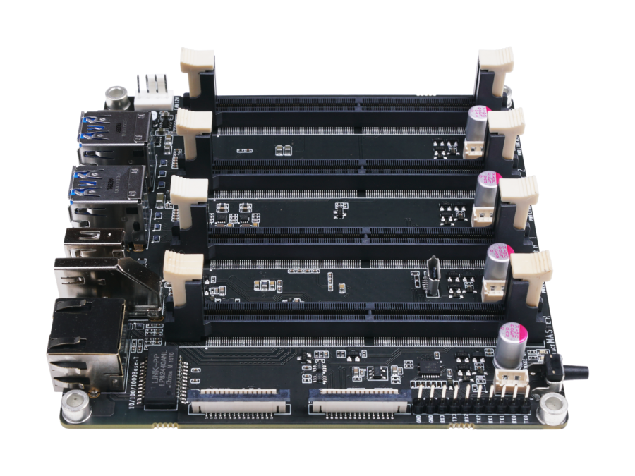 SoM'lerin birbirleriyle iletişim kurması için yerleşik 5 bağlantı noktalı Gigabit anahtar.