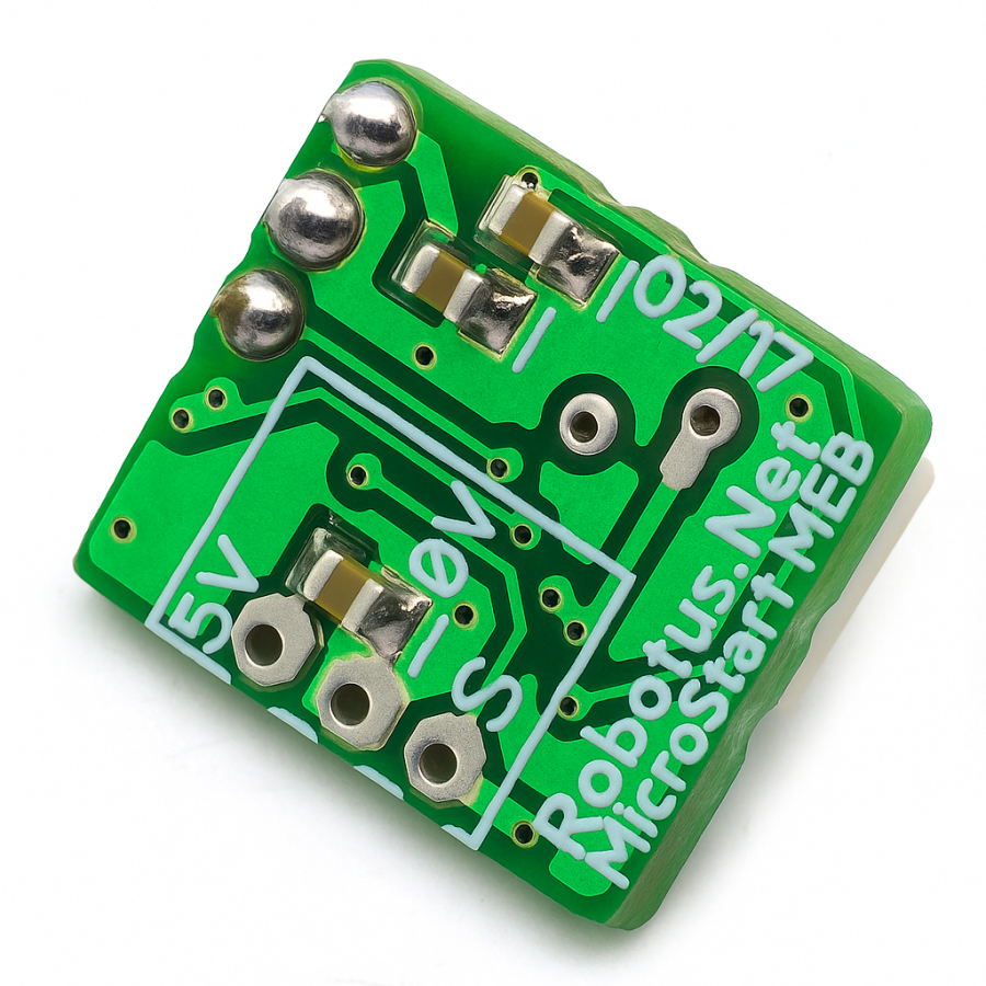 MEBSTART Başlatma Modülü sayesinde robotlarınızı uzaktan yönetebilirsiniz. Üzerindeki alıcı, kumandadan gönderilen sinyali algılar ve robotun hareketini başlatma ya da durdurma işlemini gerçekleştirir. Tetikleme durumunda çıkış 0V (Lojik 0), bekleme halinde ise 5V (Lojik 1) seviyesindedir. 5V ile uyumlu çalışır, 3.3V sistemleri desteklemez.