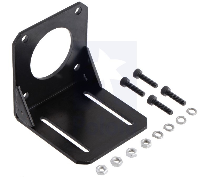 Sağlam yapısıyla Pololu tarafından sunulan L Montaj Aparatı (braket), 3 mm kalınlığında kaplanmış çelikten yapılmıştır ve yaklaşık 160 g (5.7 oz) ağırlığındadır. NEMA 23 step motorlarının tipik ön panel montaj delikleri ile uyumluluk gösterecek şekilde özel olarak tasarlanmıştır. İki adet destek yapısı, ekstra takviye sağlamak için ürünün sağ ve sol köşesine kaynaklanmıştır ve ayrıca ürün, bir yüzeye kolay montaj için iki uzun yuvaya (slot) sahiptir. Motoru brakete sabitlemek için dört adet 16 mm M4 vida, dört M4 somun ve dört pul bulunur. Bu braket ve braberindeki aksesuarlar, Pololu tarafından sağlanan tüm NEMA 23 step motorları ile çalışır. Bu braketi diğer tedarikçilerden gelen step motorlarla kullanırken farklı vidalar gerekebilir.
