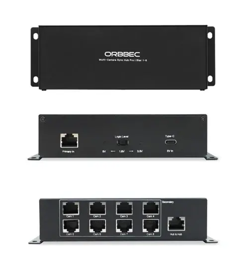 Orbbec Multi Camera Sync Hub Pro, birden fazla Orbbec 3D derinlik kamerasının (örneğin Femto Mega/Bolt) aynı anda, eş zamanlı (senkronize) çalışmasını sağlayan profesyonel bir donanım çözümüdür. Karmaşık, çok kameralı sistemlerin maliyetini ve kurulum zorluğunu düşürür.