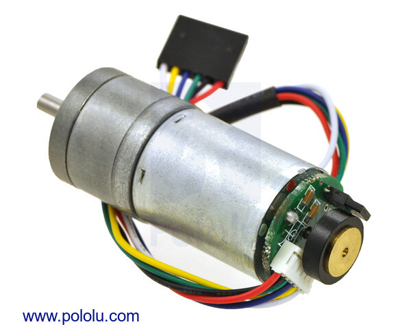 Manyetik diskin motor şaftının arka çıkıntısındaki dönüşünü algılamak için iki kanallı bir Hall Effect enkoder (kodlayıcı) kullanılır. Kuadratür enkoder her iki kanalda kenarlar için sayım yapması durumunda 48 CPR'lık bir çözünürlük sağlar. Redükör çıkışının CPR hesabı için dişli oranı 48 ile çarpılabilir. Motor/enkoder; renk kodlu 20cm uzunluğunda ve 1X6'lık bir dişi header (0.1" aralıklara sahip) ile sonlanan bağlantı yapısına sahiptir.