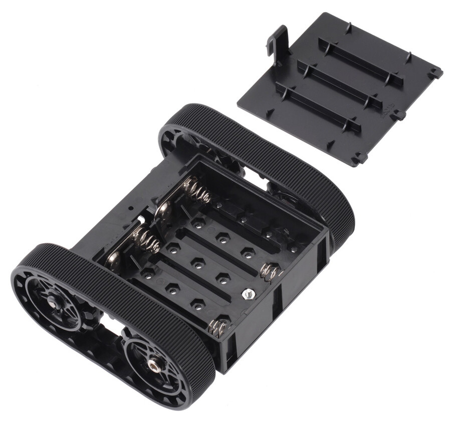 Pololu Zumo Paletli Mini Sumo Robot Gövdesi, her iki yanından 10 cm geçmeyen uzunluğu ile mini sumo yarışmaları kategorisi için uygun küçük bir robot kasasıdır. Mini Sumo robot klasmanı için uyumlu bu küçük robot şasesi siyah ABS den üretilmiştir ve 4 AA pil yuvası ve 2 micro metal motor soketi ihtiva etmektedir. Bir kit halinde gönderilen bu ürün ayrıca 2 silikon palet ve 2 sürme 2 de avara dişli çark içermektedir. Tüm bunlar 1/16″ akrilik montaj plakasına montajlanacak şekilde uygun montajlama elemanlarıyla birlikte gönderilir. Bu plaka motorları, motor kontrol kartlarını ve mikrodenetleyicileri üzerinde taşıyacak yapıdadır.Not: Micro metal motorlar ve bataryalar pakete dahil DEĞİLDİR