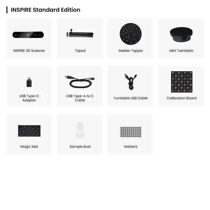Revopoint INSPIRE, 0,2 mm hassasiyete sahip, kullanımı kolay ve uygun maliyetli bir 3D tarayıcıdır. INSPIRE kompakt tarayıcı, 3D baskı meraklılarının yanı sıra üreticiler ve tasarımcılar için çok yönlü yakalama seçenekleri sunmak üzere gelişmiş 3D tarama teknolojisi ile donatılmıştır.