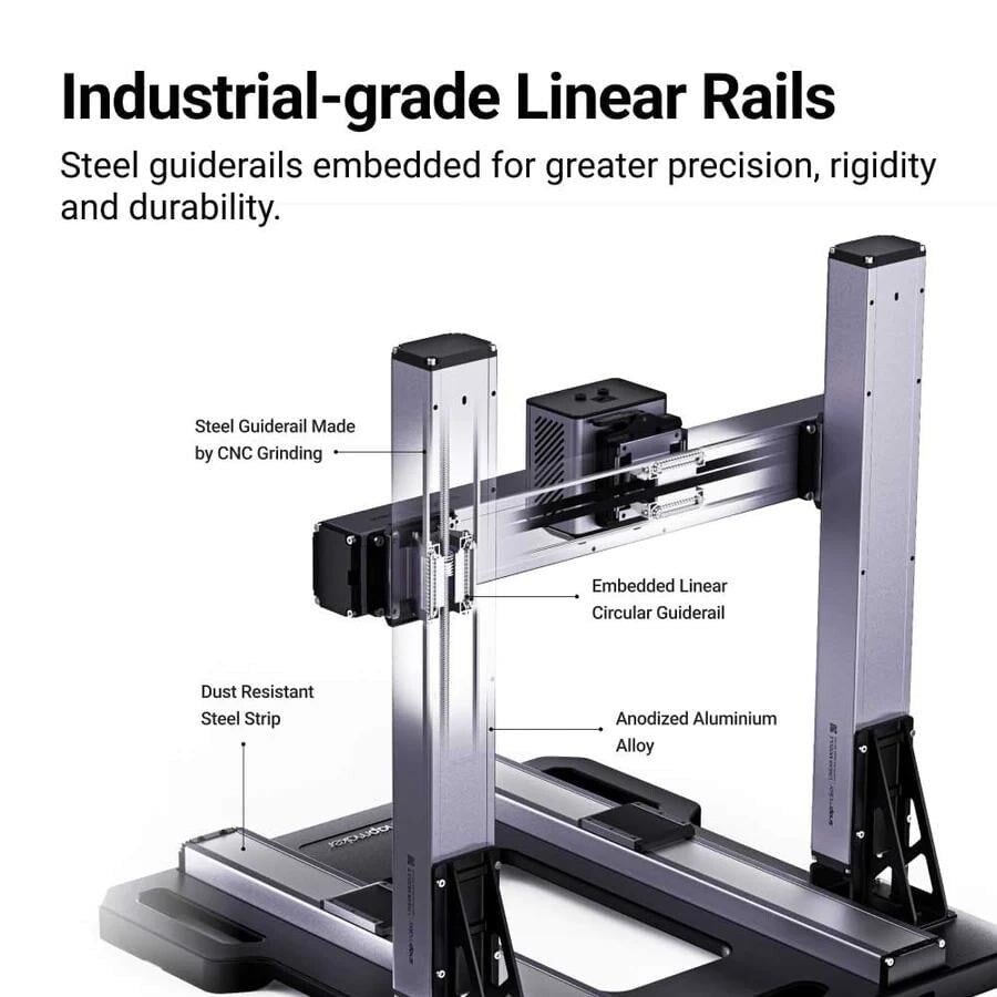 Snapmaker Artisan tamamen metal, endüstriyel sınıf bir yapıdır. CNC taşlama kullanılarak mikron seviyesine kadar hassas bir şekilde işlenmiş heavy duty tip çelik kılavuz raylara sahiptir. 3D yazıcı, yüksek baskı hızları, olağanüstü hassasiyet ve büyük projelerin üstesinden kolaylıkla gelebileceğiniz 400 x 400 x 400 mm'lik devasa baskı hacmi gibi artılara sahiptir.NOT: Bu üründe KABİN (enclosure) pakete dahil DEĞİLDİR!!!