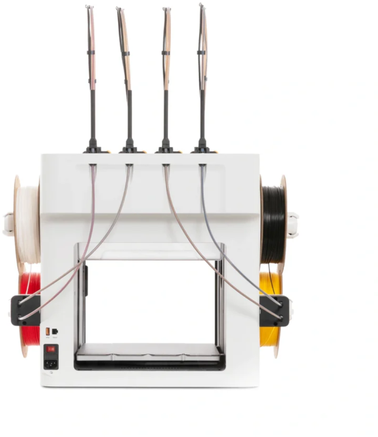 Entegre, otomatik filament yönetim sistemi dört makaraya kadar tutar. Filamentler otomatik olarak yüklenir, resmi Snapmaker filamentleri RFID aracılığıyla tanınır ve yedekleme modunda, makara boşaldığında yazıcı filamentleri otomatik olarak değiştirir – manuel müdahaleye gerek kalmadan kesintisiz baskı için!