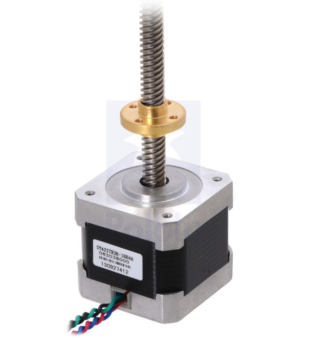 NEMA-17 (boyutlu) bipolar step motor çıkış mili (şaft) 28 cm uzunluğunda ve 386 gr ağırlığında bir vidalı mile sahiptir. Bu özelliğiyle ürün hassas açık döngü pozisyon kontrolünde kullanılan (özellikle CNC'ler ve DIY kullanıcılarının uğraştığı 3D yazıcılar) bir doğrusal aktuatöre dönüşebilir.