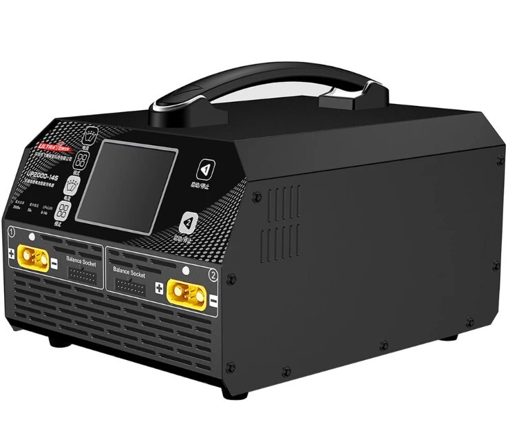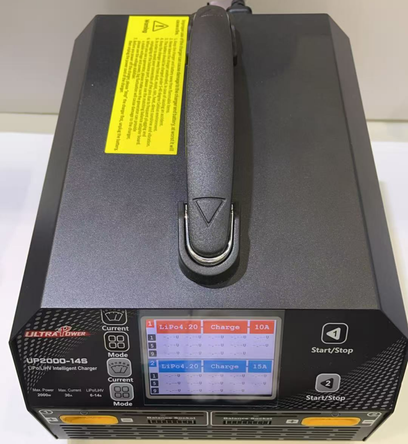 UP2000-14S Dual Kanal Balanslı LiPo - LiHV Profesyonel Batarya Hızlı Şarj Cihazı lityum piller için tasarlanmış yüksek güçlü ve 2 Kanllı bir hızlı şarj cihazıdır. UAV, İHA dron pilleri ve diğer uyumlu tüm pillerin şarjında kullanılabilir. Kanal başına maksimum 1500 W (tek kullanım)/2000W (ikili kullanım) ve 30 A çıkış gücü ile iki pil takımının aynı anda şarj edilmesini veya depolanmasını destekler. Akım 5A/10A/15A/20A/25A/30A arasında ayarlanabilir.