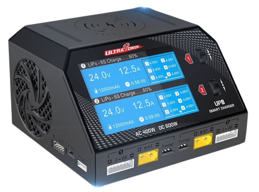 UP8 2 Kanal 1-6S LiPo- LiHV Balanslı Smart Pil Şarj Cihazı - 400W(AC) - 600W(DC), 10W Kablosuz Cep Telefonu Şarjı