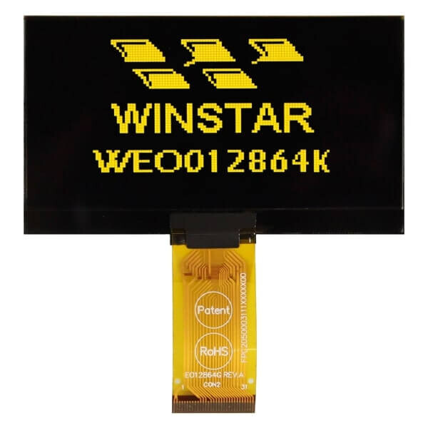 Winstar 2.7 inç COG OLED Ekran, SSD1309 sürücü IC ile oluşturulmuş tüketici elektroniği projeleri için uygun 2.7 inç 128x64 çözünürlüklü bir ekrandır. Dokunmatik özelliği yoktur ve sarı renk ışık verir. 3V besleme ile çalışır ve sahip olduğu polarizer ile yansımayı engeller.